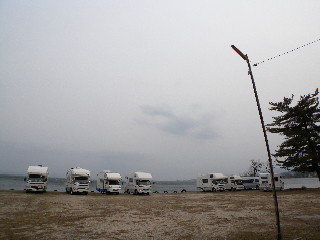 今日は当社滋賀展示場の横でオフ会があります。お昼過ぎからキャンピングカーが集まり始めました。