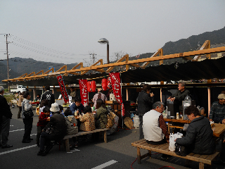 日曜日はいつもここへ寄って野菜を買います。朝市です。今日は来場者の年齢層がまとまっているようです。みんな楽しそうです。