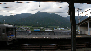 これはJR志賀駅です。目の前に比良山系が見えます。