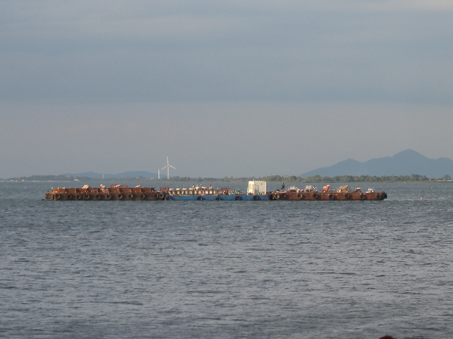 明るい時に湖上を見ると、何があるのかよく見えませんでしたが、発射台らしきものが見えます。