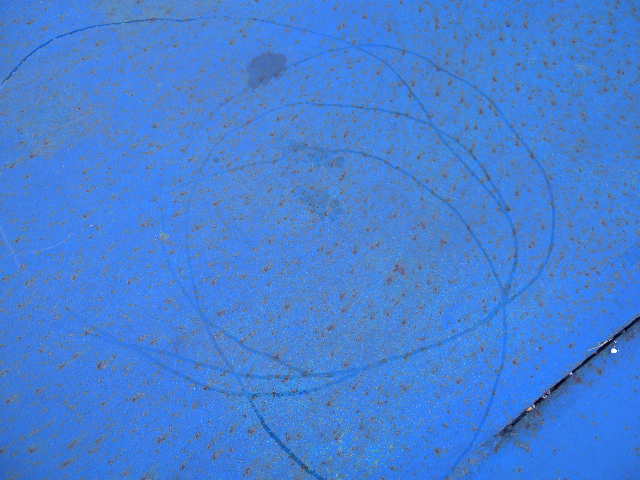 これは、マイクロバスベースのキャンピングカーの前輪タイヤが、高速走行中突然バーストを起こした際のアルミホイルです。ホイルの外側リム部分が削られたような形跡があります。