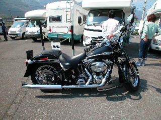 「Gジャン」着てそれらしくご来場いただきました。 アメリカ国旗をバックに写真を撮らせていただきました。