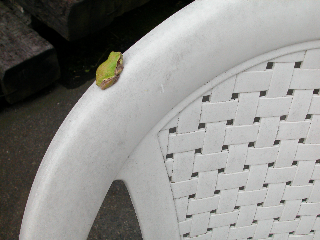 いすが白いので、この「カエル様」、白っぽく色変化しています。