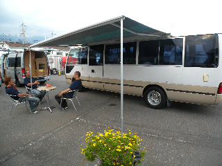 オーニングを出してスタッフがくつろいで(さぼって)います。
