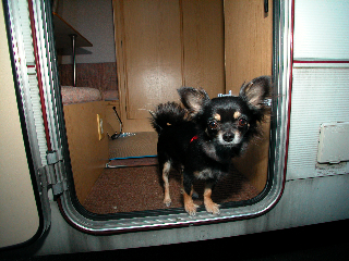 2009.4/5.滋賀展示場ご来場「てまり」 チャンちわわ 1歳トレーラーの室内がお気に入りのようでした。